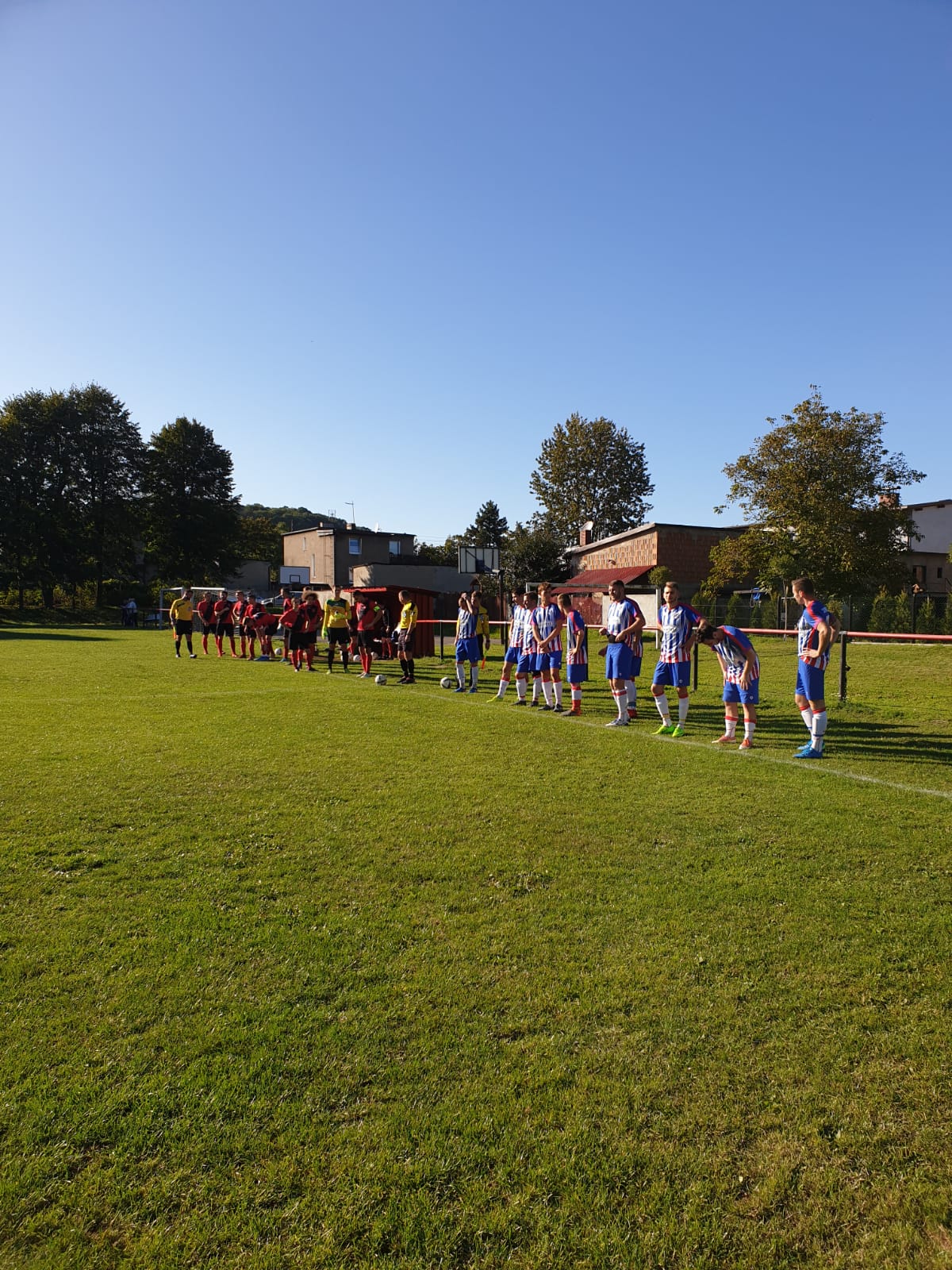 Pierwsza połowa spotkania mistrza i wicemistrza klasy A z ubiegłego sezonu była dość wyrównana. Było dużo walki w środkowej części boiska, ale i dużo niedokładności, gdyż gry nie ułatwiał stan boiska. W końcówce pierwszej części meczu coraz wyraźniej rysuje się nasza przewaga, co przynosi efekt w postaci bramki zdobytej przez Damiana Różańskiego.